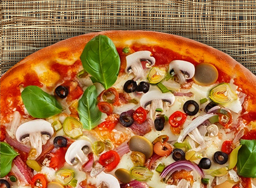 Salami, pepperoni, Italian sausage, sweet red & green bell peppers, fresh mushrooms, onions & black olives