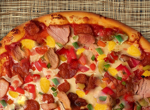 All white meat marinated with our own teriyaki sauce topped with pineapple, red & green bell peppers, sesame seeds & extra cheese