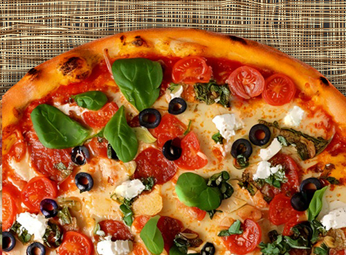Pepperoni, black olives, onions,fresh tomatoes, oregano & feta cheese