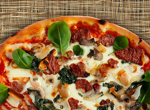 Artichoke Hearts • Bell Peppers • Jalapeño Peppers • Fresh Tomatoes Sun-dried Tomatoes • Zucchini • Garlic • Green Onions • Spinach Black Olives • Fresh Mushrooms • Pineapple • Red Onions